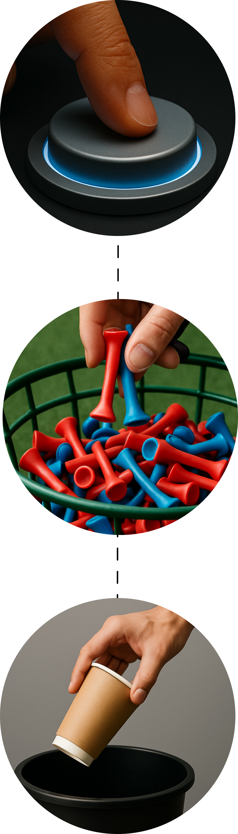 Return balls & tees to containers, and clubs to the bag.